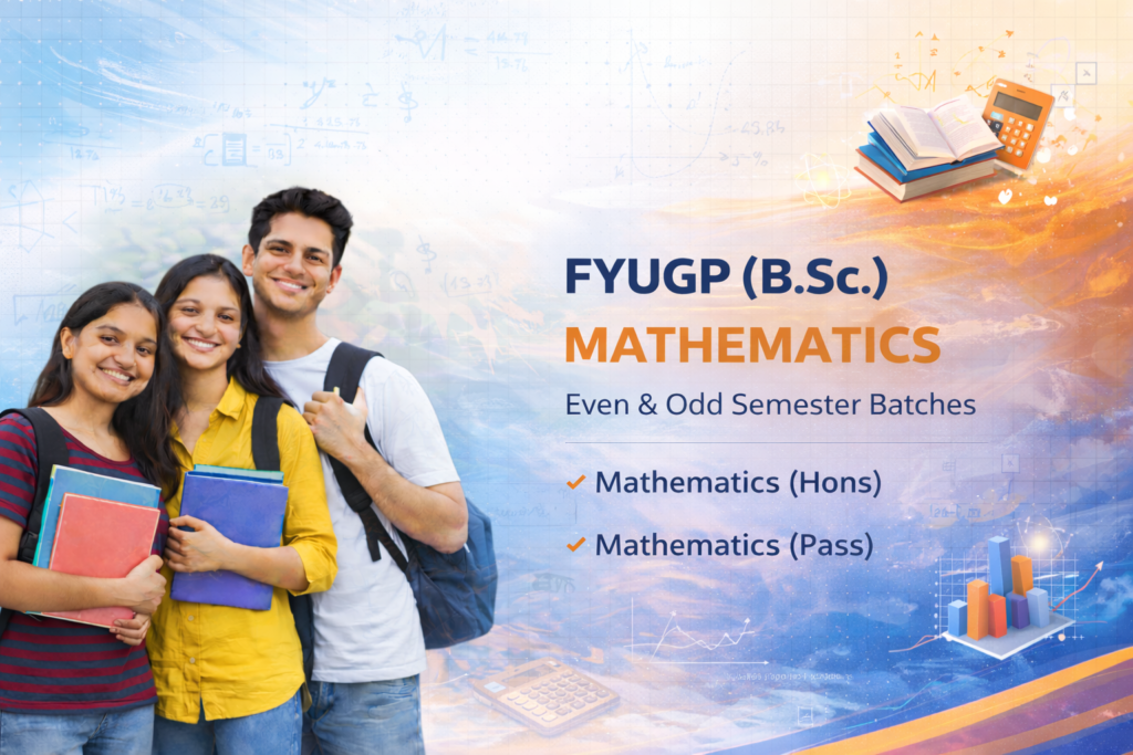 Our FYUGP B.Sc. Mathematics program is designed to build strong conceptual understanding and problem-solving skills. The course covers key topics such as calculus, algebra, differential equations, and analytical geometry. Through structured classes, regular practice, and exam-focused guidance, students develop the analytical ability required for academic success and competitive examinations.