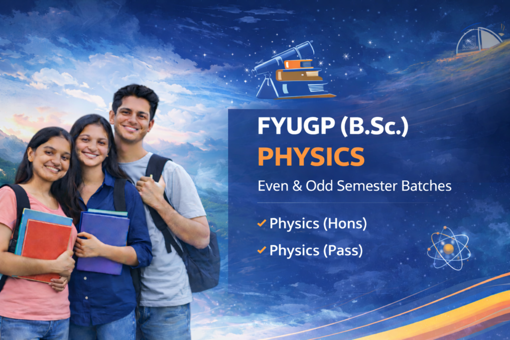 Our FYUGP B.Sc. Physics program is designed to build strong conceptual understanding and advanced analytical problem-solving skills. The course covers key topics such as mechanics, electromagnetism, thermodynamics, optics, and modern physics. Through structured classes, regular practice, and exam-focused guidance, students develop analytical ability required for academic success and competitive examinations.